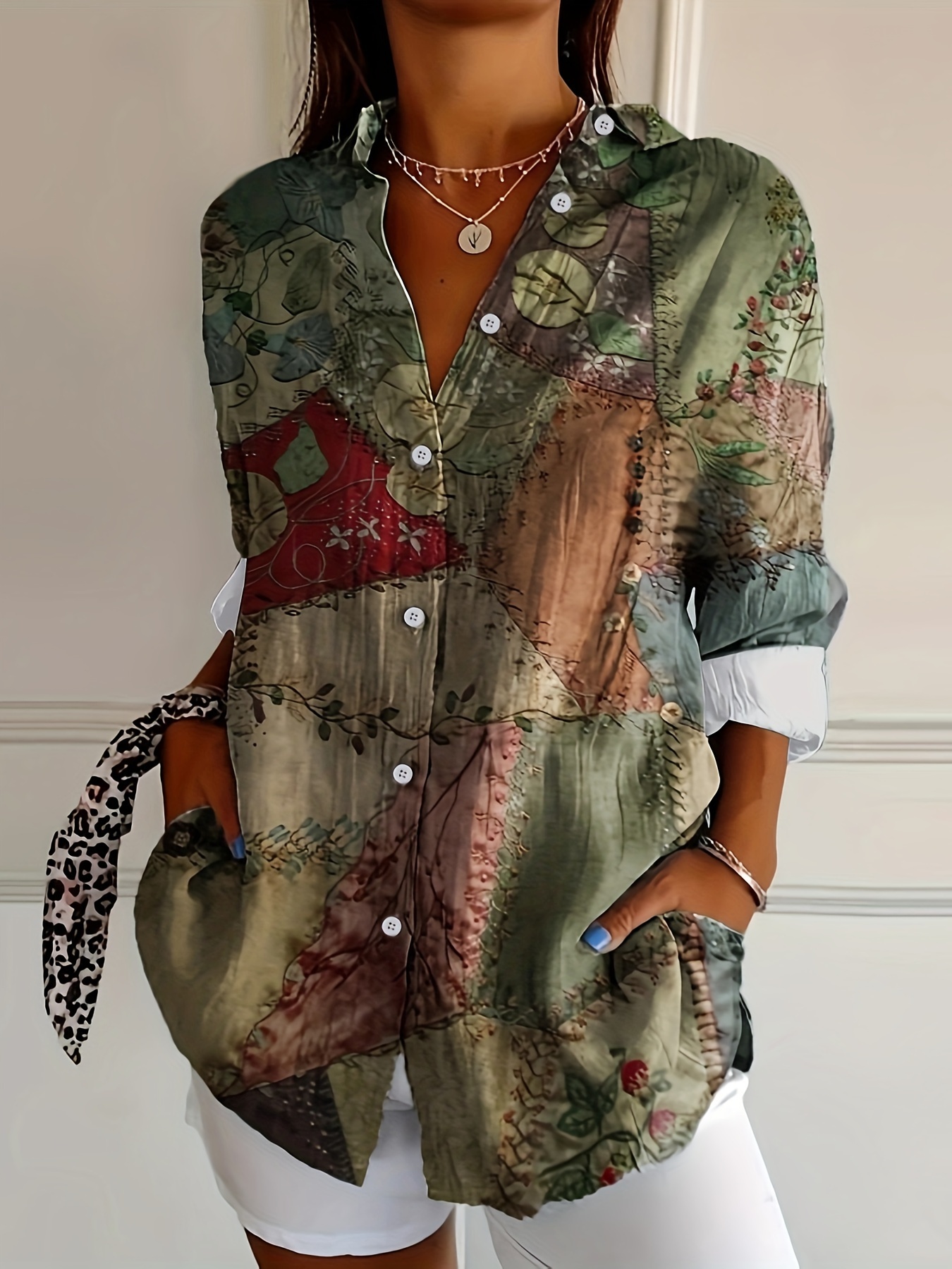 Vibrant Plus Size Women's Large Size Printed Shirt - Stylish Relaxed Fit - Soft Breathable Fabric - Casual Chic Style - Summer Essential, Everyday Outfit, Trendy Design, Quality Stitching, Comfortable Wear, Long Sleeve Top, Fashion Lovers