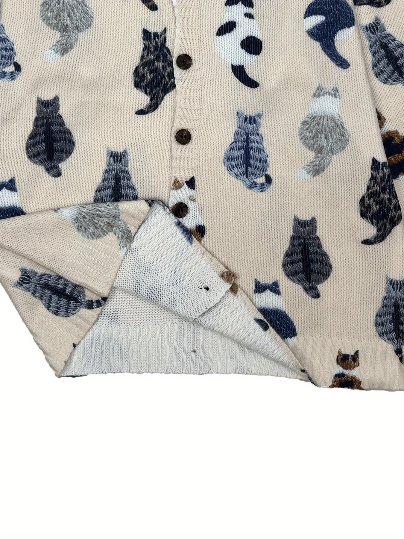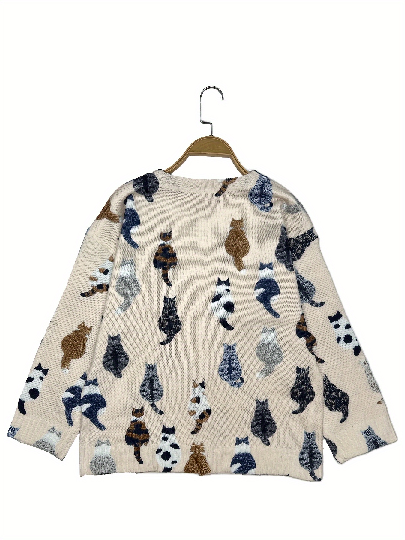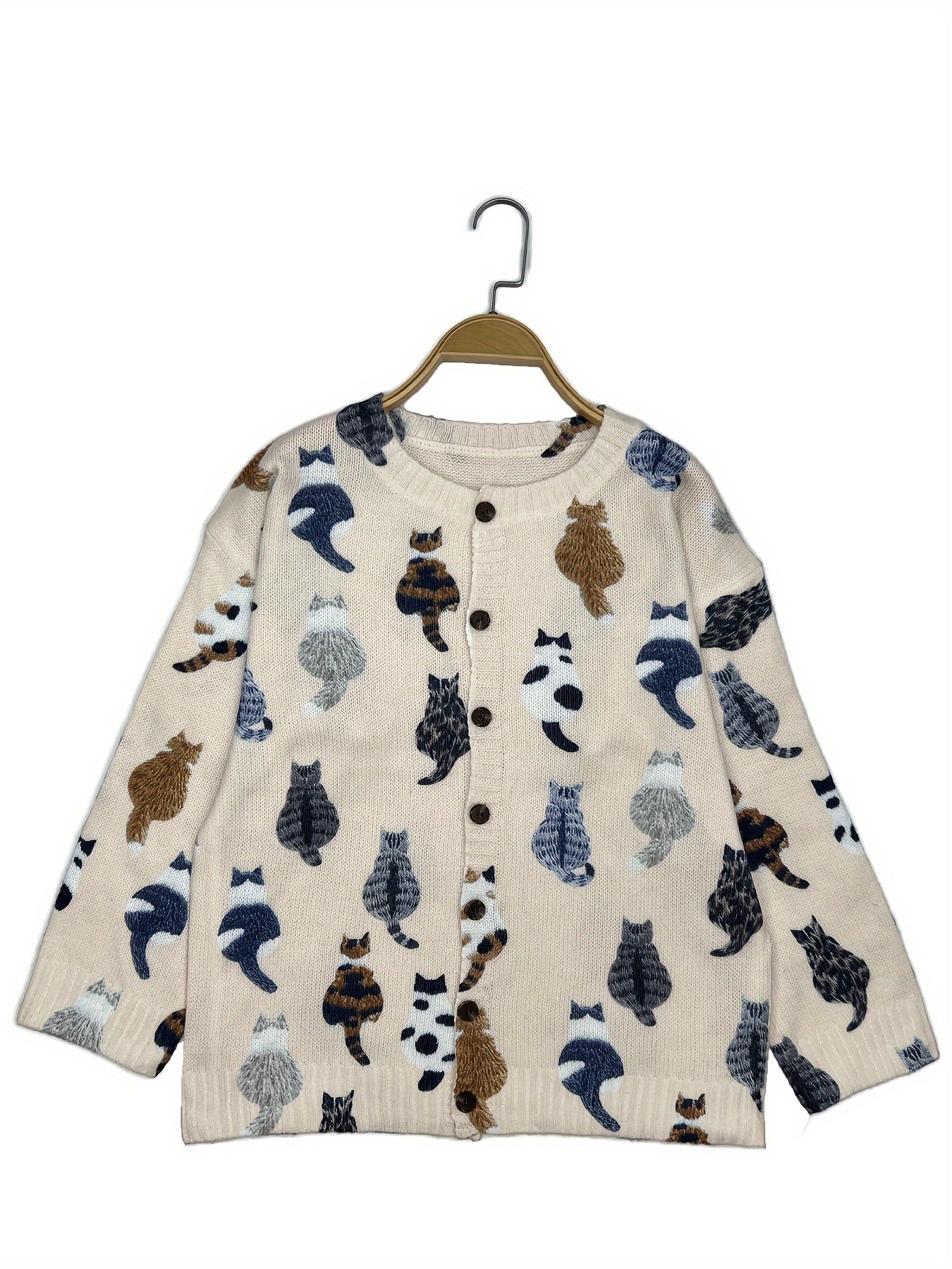 [Playful Design] Plus Size - Women's Lightweight Sweater Jacket - Pastel Pink With Black & White Animal Print, Button-Front Closure, Non-Bulky Long Sleeve Cardigan For Fall/Winter, Everyday & Formal Outfits - Position BK 052032, Fall Fashion, Playful Design, Comfortable Fit, Stylish Outerwear, Fashion Lovers, Cat Cardigan/Sweater For Women, Cardigan For Curvy Women, Curve Cat Print, Cardigans Women Good Quality, Vest Woman Large Size With Sleeve