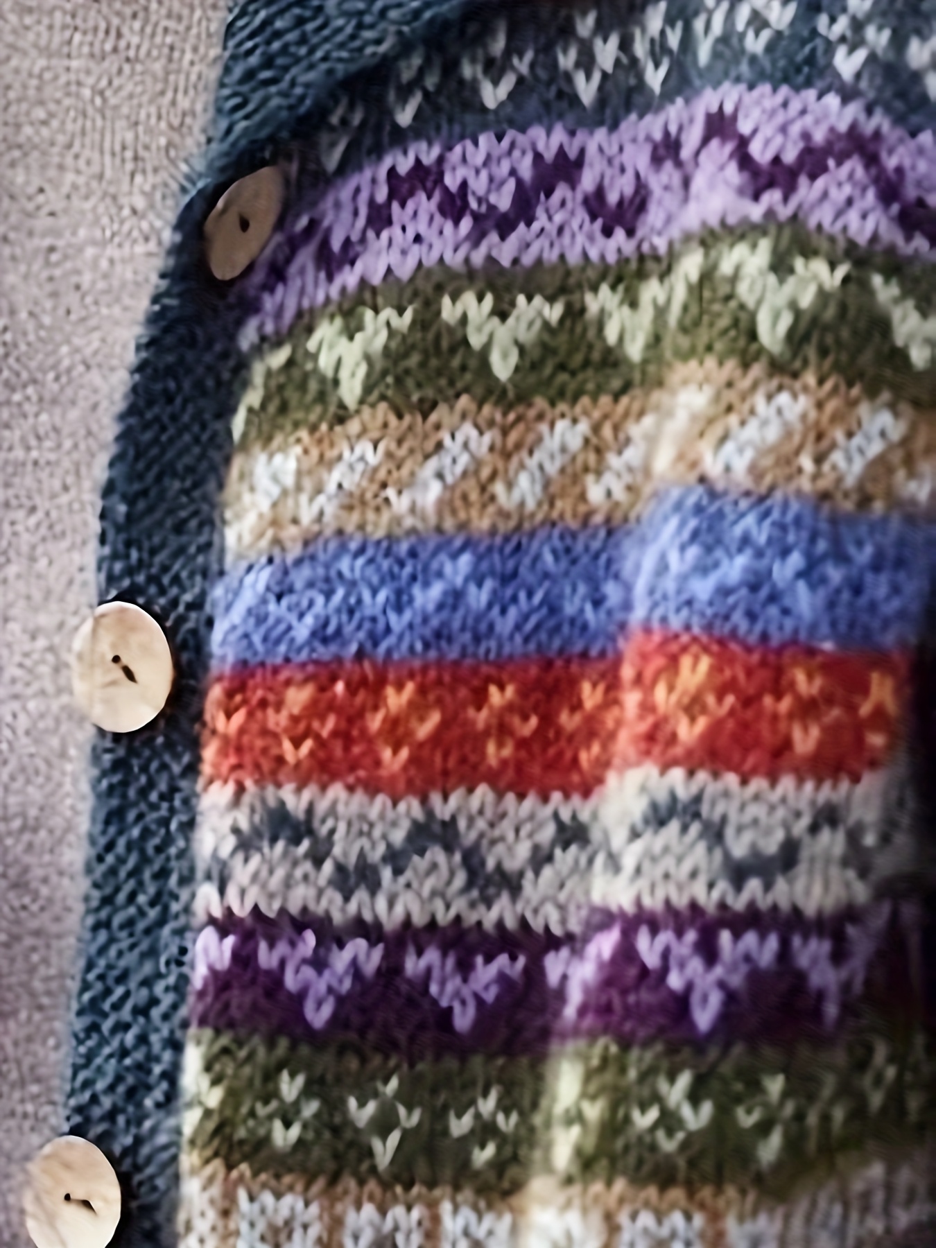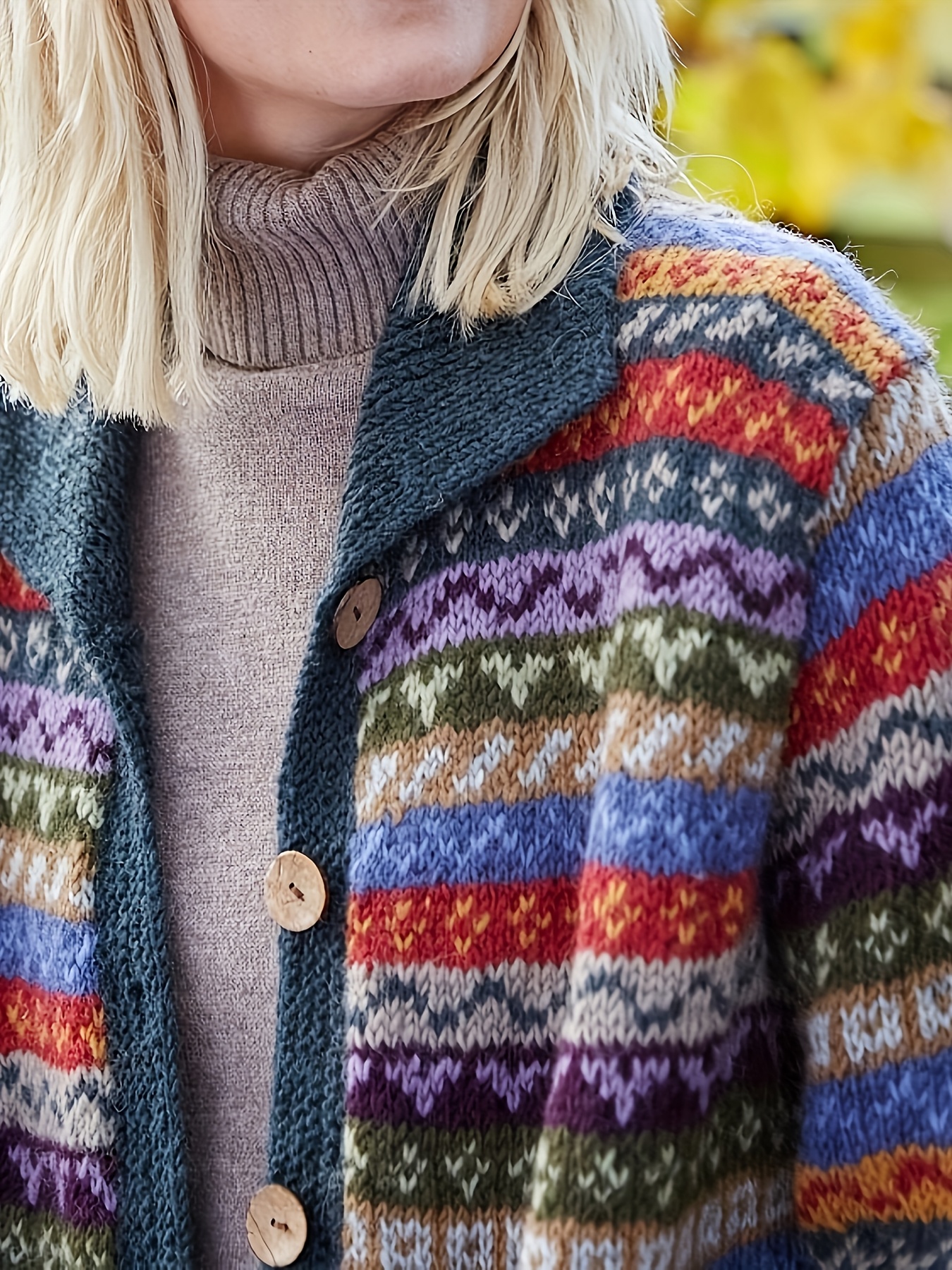 [Retro Fair Isle Cardigan] Simpfit Women's Retro Fair Isle Jacquard Cardigan - Geometric Pattern Knit Sweater with Open Front, Machine Washable, Soft Fall Winter Coat for Casual & Formal Outfits, Cute Sweaters
