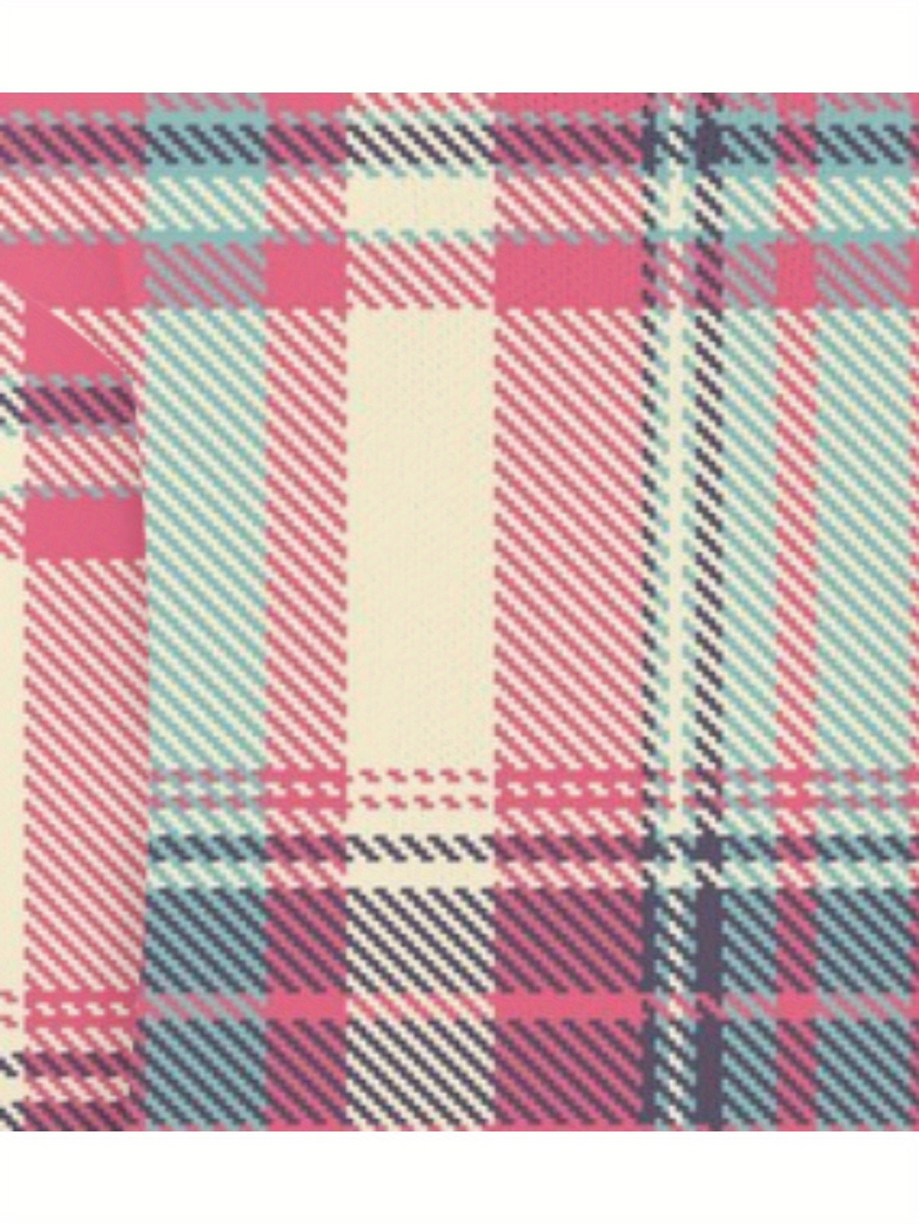 Plus Size Women's Soft Stretchy 3D Plaid Cardigan Sweater Jacket - Pink Button Front Round Neck Longline H-Line Coat with Umbrella Hem, All-Season Cozy Outerwear for Casual & Semi-Formal Wear, Machine Washable