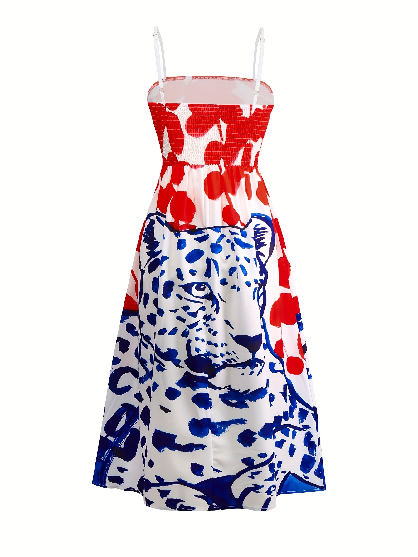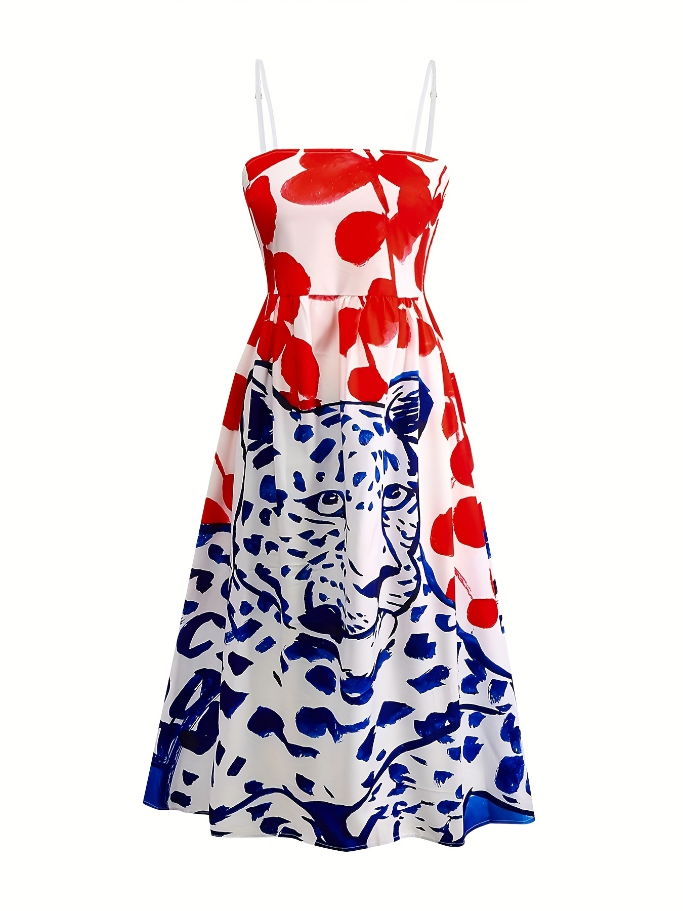 Floral Print A-Line Dress with Spaghetti Strap Neckline - Short to -Length Dress in Vibrant Botanical Patterns, Machine Washable Dress for Weddings, Parties & Beach Events - New Large Size Available for all-Season Casual