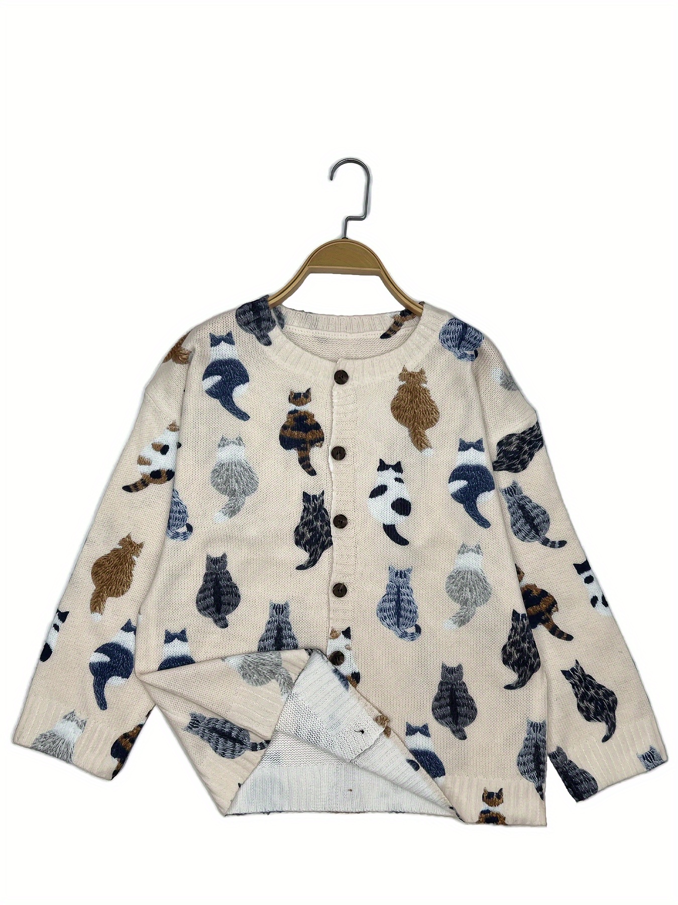 [Playful Design] Plus Size - Women's Lightweight Sweater Jacket - Pastel Pink With Black & White Animal Print, Button-Front Closure, Non-Bulky Long Sleeve Cardigan For Fall/Winter, Everyday & Formal Outfits - Position BK 052032, Fall Fashion, Playful Design, Comfortable Fit, Stylish Outerwear, Fashion Lovers, Cat Cardigan/Sweater For Women, Cardigan For Curvy Women, Curve Cat Print, Cardigans Women Good Quality, Vest Woman Large Size With Sleeve