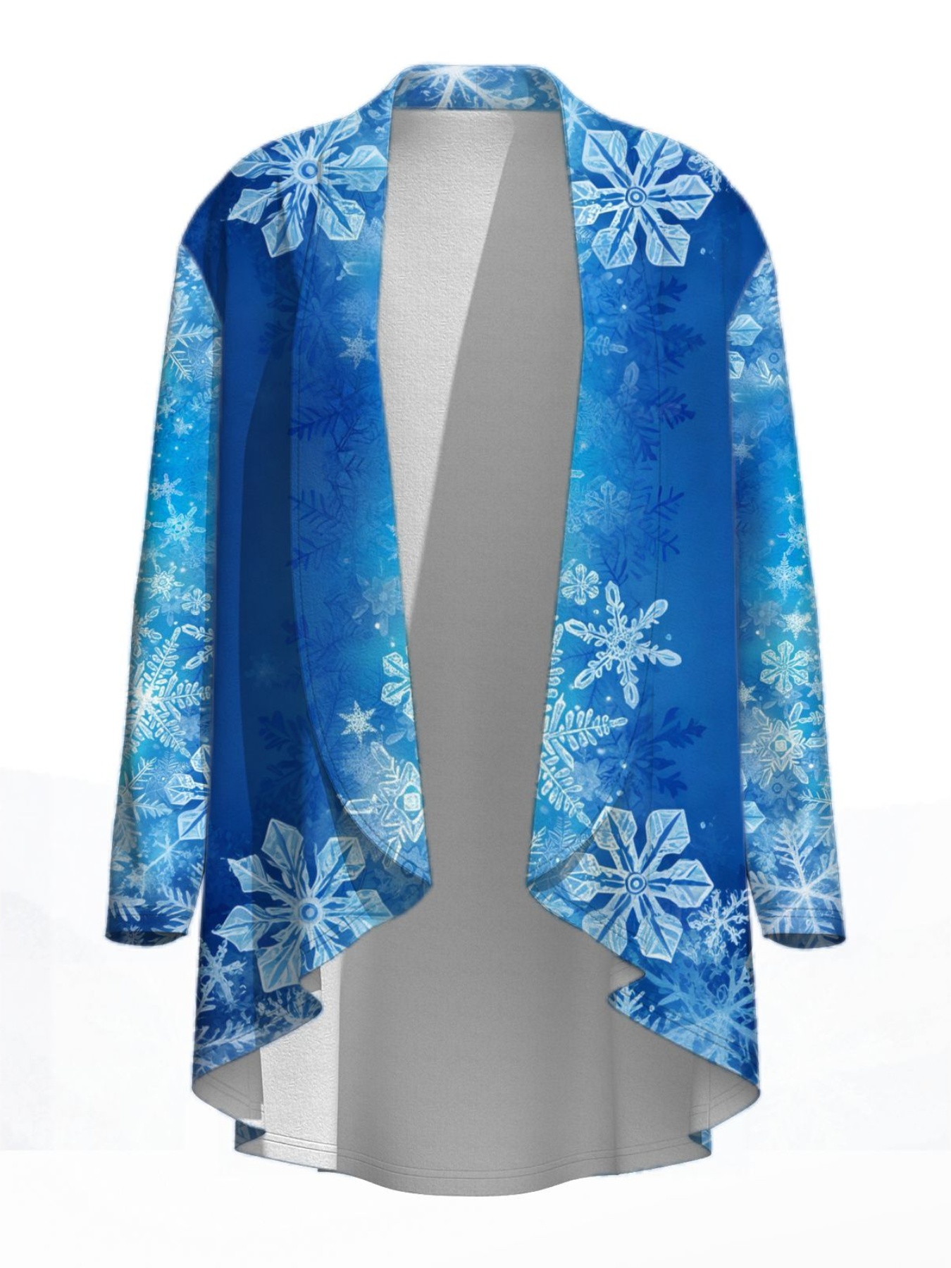 Plus Size, Chic Plus Size Women's Full-Body 3D Digital Print Cardigan Jacket - Long Sleeve Open Front Sweater Coat, Spring/Fall Outerwear for Blouses, Skirts & Jeans (Machine Washable)