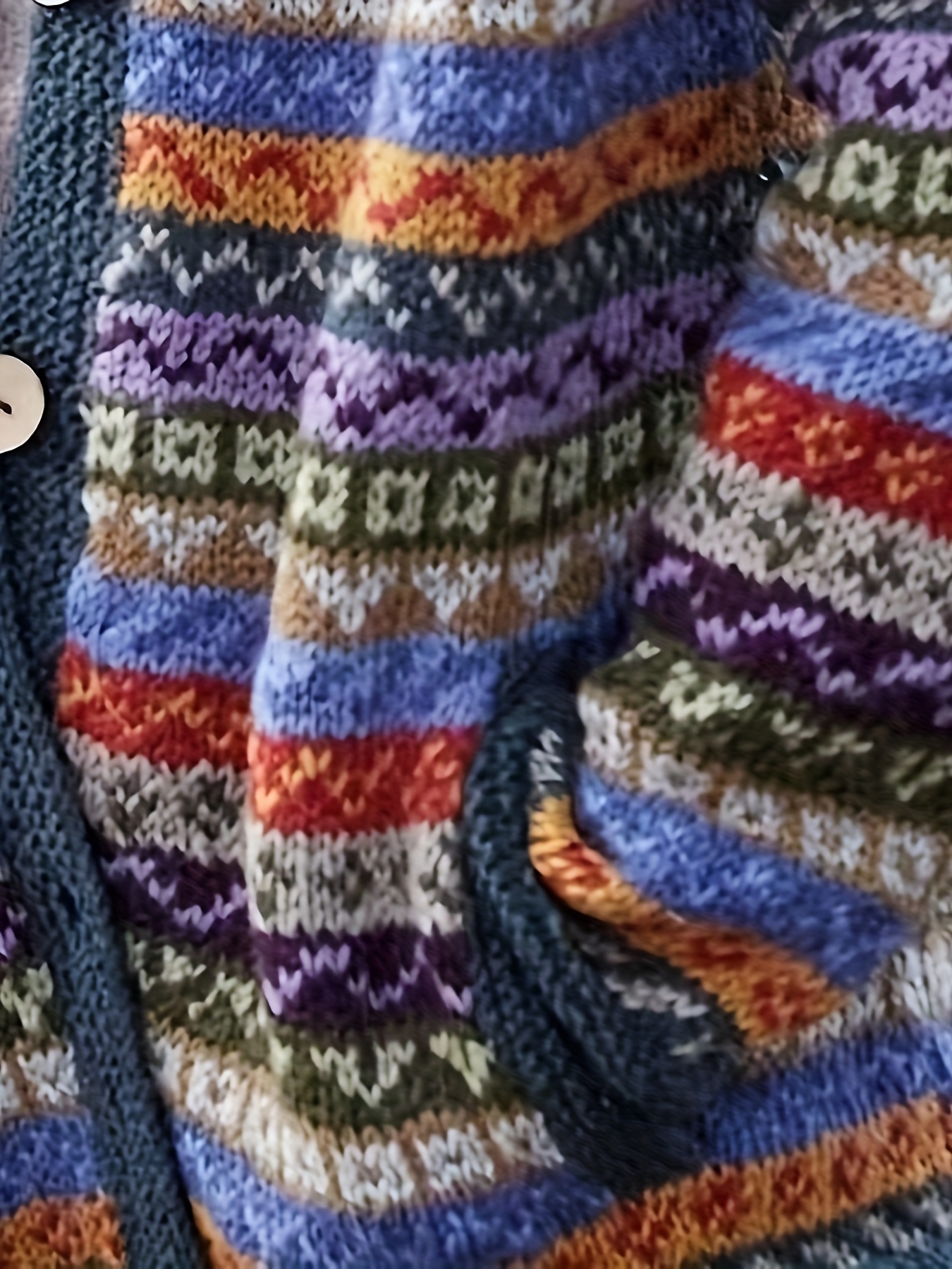 [Retro Fair Isle Cardigan] Simpfit Women's Retro Fair Isle Jacquard Cardigan - Geometric Pattern Knit Sweater with Open Front, Machine Washable, Soft Fall Winter Coat for Casual & Formal Outfits, Cute Sweaters