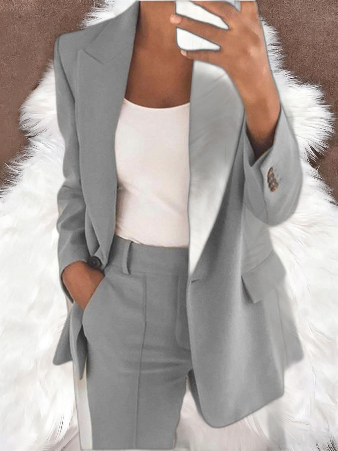 Women Fashion Solid Color Long Sleeve Pocket Outerwear Loose Cardigan Coat | Ladies Bubble Jacket Everyday & Formal Outfits Front Open Spring/Fall Outerwear Outfits Clothes Coat Tops OL Suits Essential, Chic Style, Material