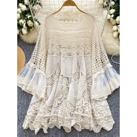 NEW Bohemian Style Vintage Dress Women's Loose Hollow Hook Flower Design Short Midi Skirt