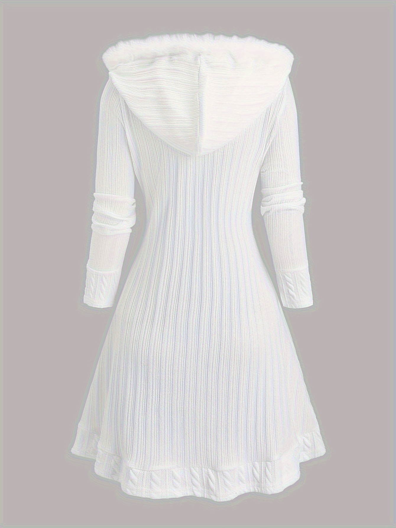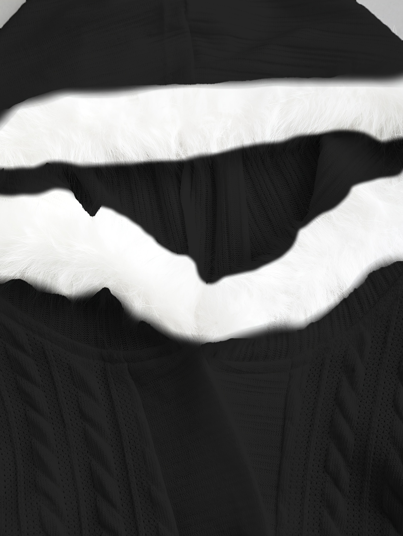 Plus Size, Plus Size Y2K Twist Plaid Faux Fur Patchwork Hooded Coat Button Long Cardigan