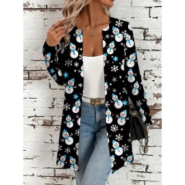 Plus Size, Plus Size Women's Oversized Black Snowman & Snowflake Cardigan - Soft Machine-Washable Winter Coat, Christmas Sweater Jacket with White Snowflake Patterns, Cozy Casual Winter Wear for Holiday Parties & Daily Outfits