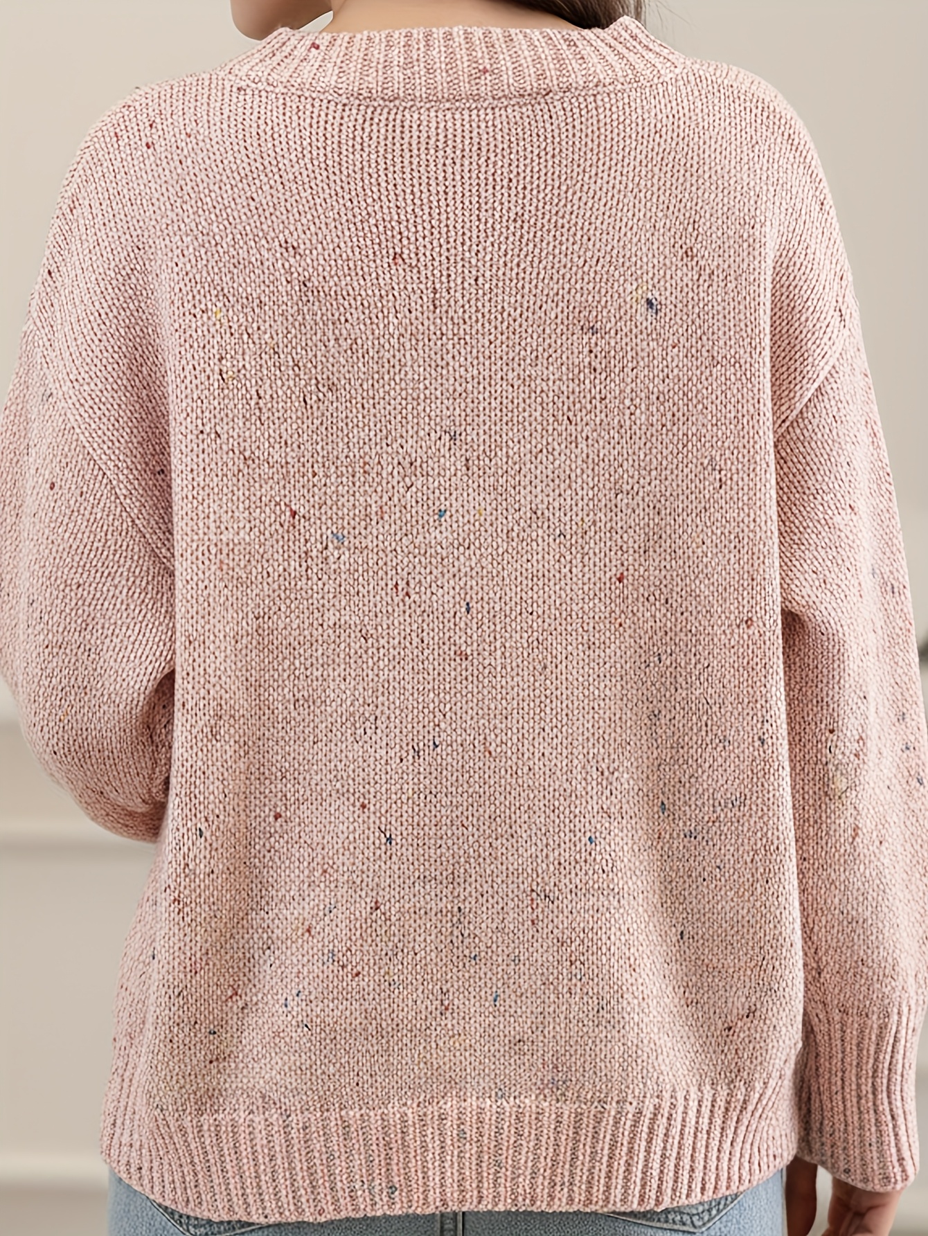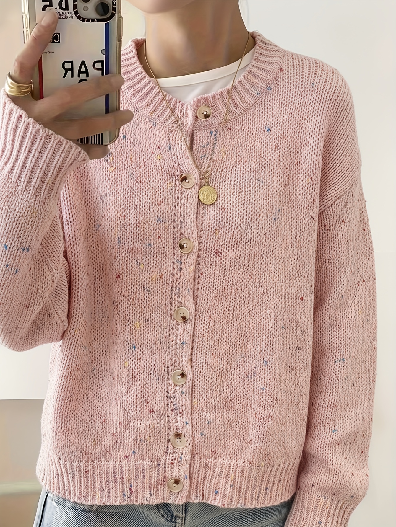 Plus Size, Women's Elegant Solid Color Round Neck Blouse - Loose Fit Long Sleeve Button-Front Jacket, Spring/Autumn Outerwear, Machine Washable Casual to Dressy Swe Coat ( Special Line)