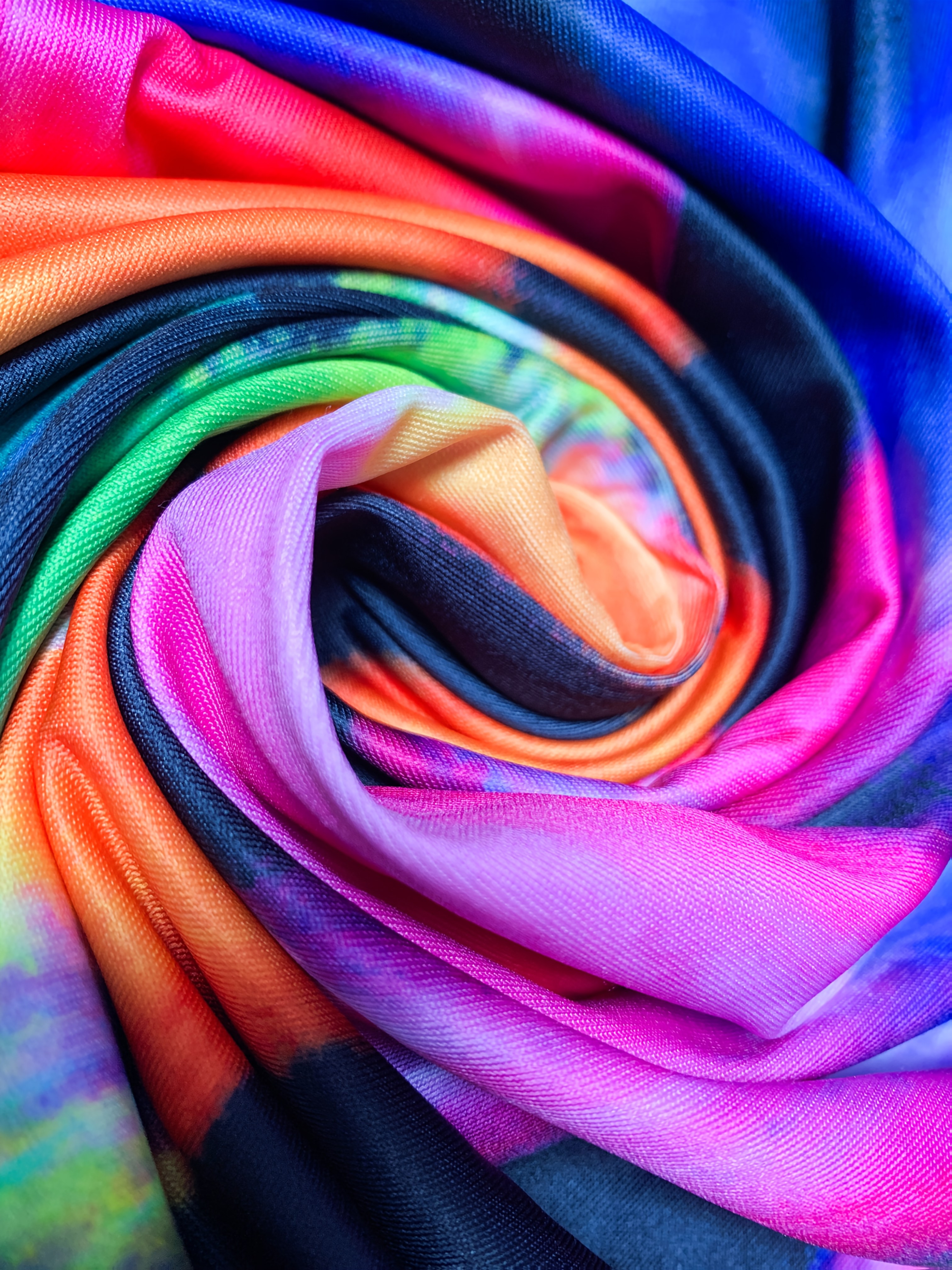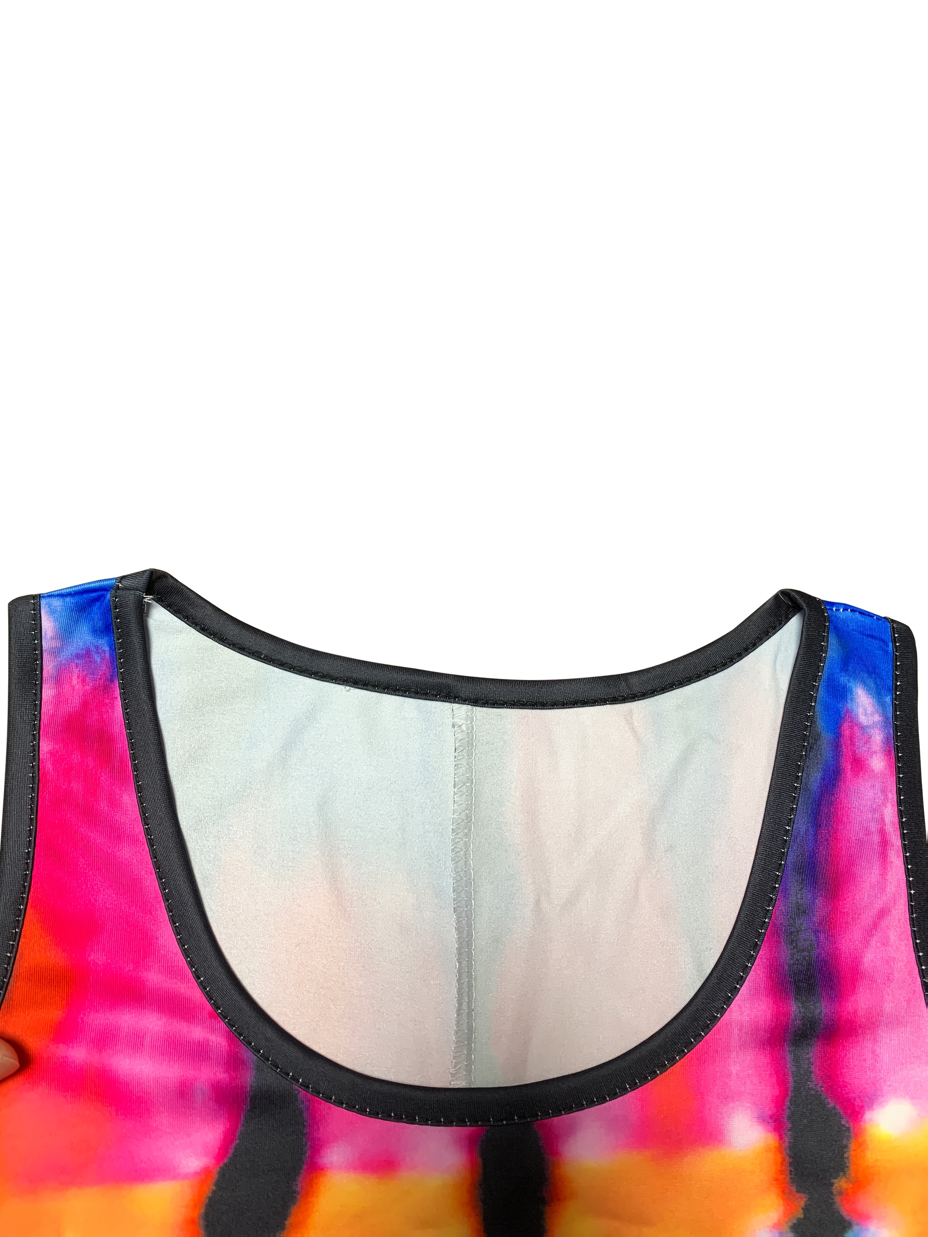 [Tie-Dye Beach Dress] Vibrant Tie-Dye Print Women's Sleeveless Dress | Lightweight Breathable Round Neck, Machine Washable, Spring Summer Beach Vacation Casual Outfit - Blue Yellow Pink Purple on Black Background Fabric