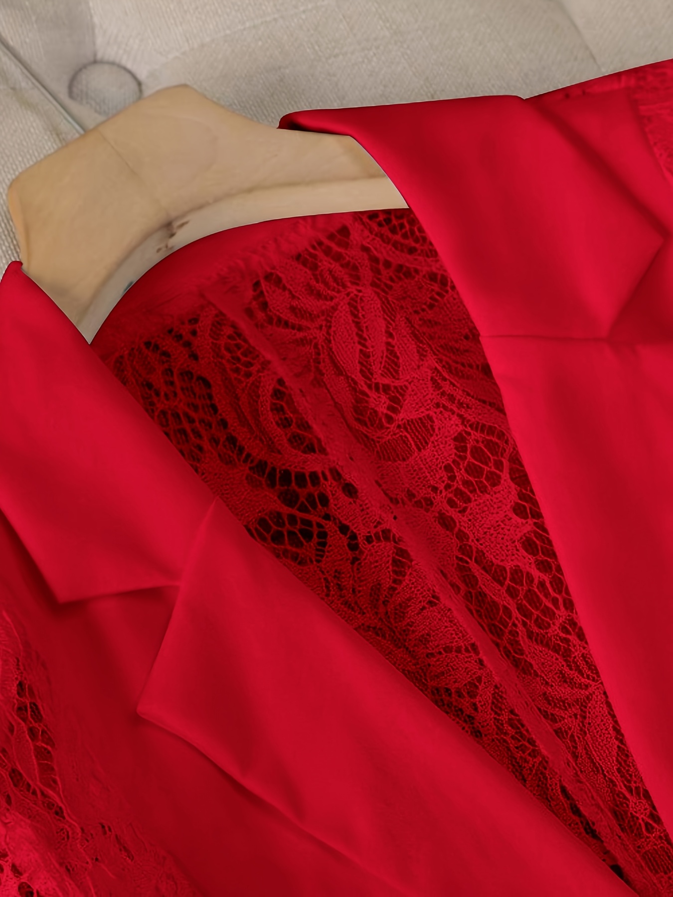 Women'S Lightweight Blazer - Elegant H-Silhouette Office Jacket, Non-Stretch Fabric, Three-Quarter Sleeve Blazer for Women, Professional & Casual Outfits (Spring/Fall/Summer) - Easy-Care Business Coat, Spring Summer Wear, Lace Trim Detailing, Fall Wardrobe, Breathable Material, Working Women